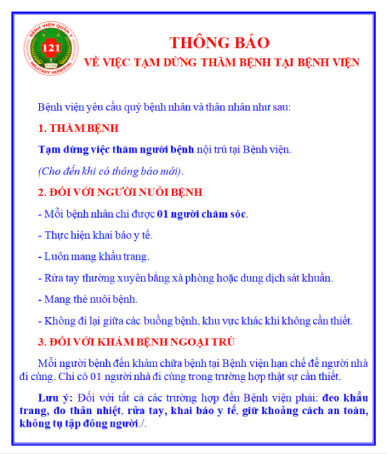 2019 @ Bệnh viện Quân y 121 - Giấy phép số 1612/QĐ-CT ngày 11/8/2015 của Tổng cục Chính trị